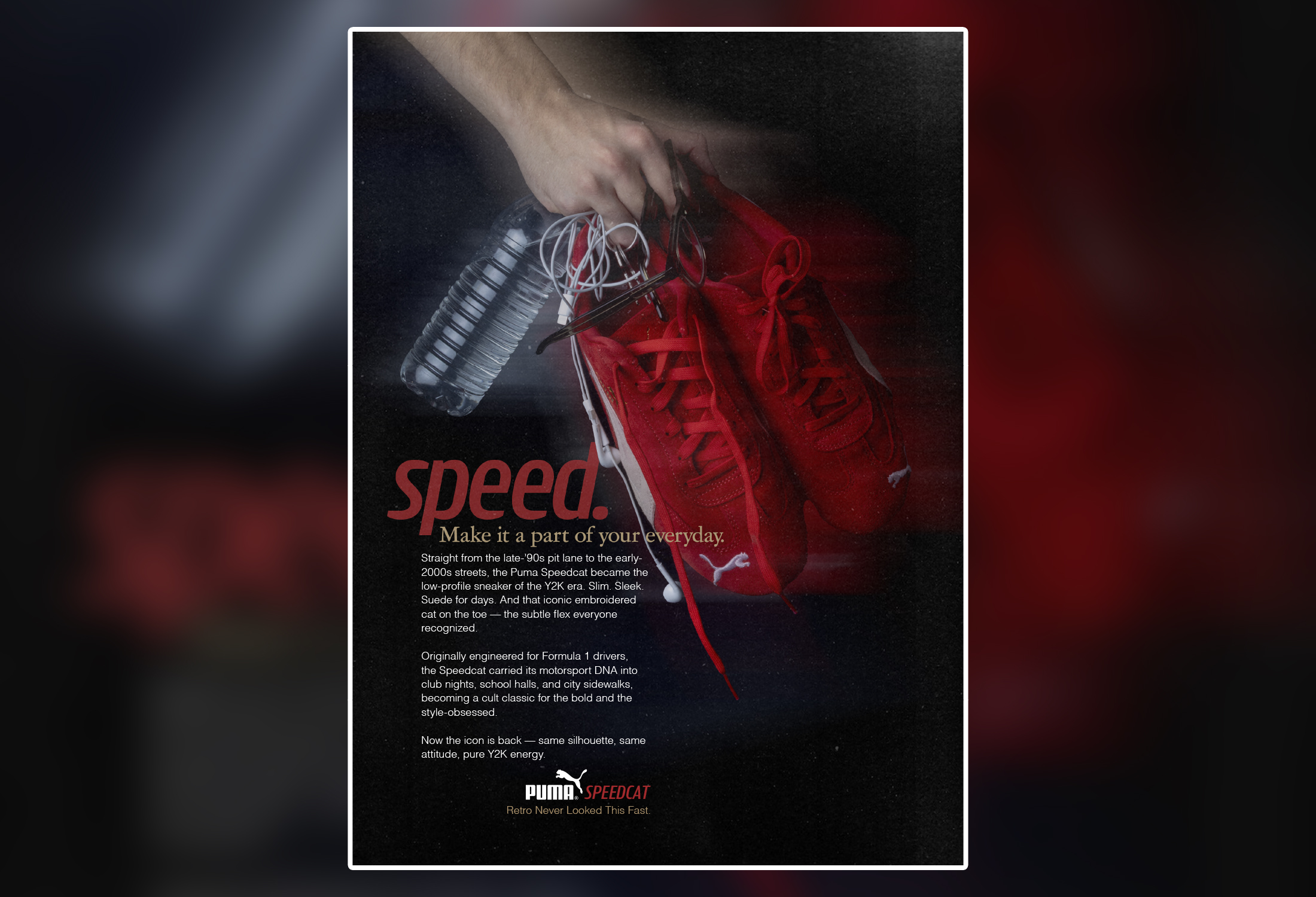 The goal was to market a silhouette – originally made for Formula 1 drivers – as a sneaker that could be worn daily by pairing it with everyday essentials. This approach highlighted how a performance-driven design could seamlessly integrate into daily life.